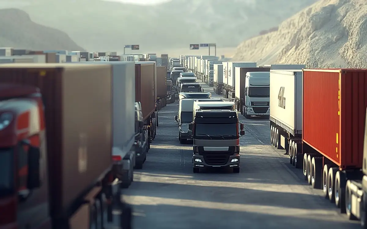 Водители грузовиков, стояшие на таможенном посту, жалуются, что вынуждены ожидать проезда 2-3 дня, находясь в пробке протяженностью 5-6 километров.