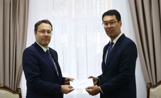 Заместитель министра иностранных дел Медер Абакиров сегодня принял копии верительных грамот от посла Королевства Бельгия в Кыргызстане, с резиденцией в г. Астана Эрика Де Майера.