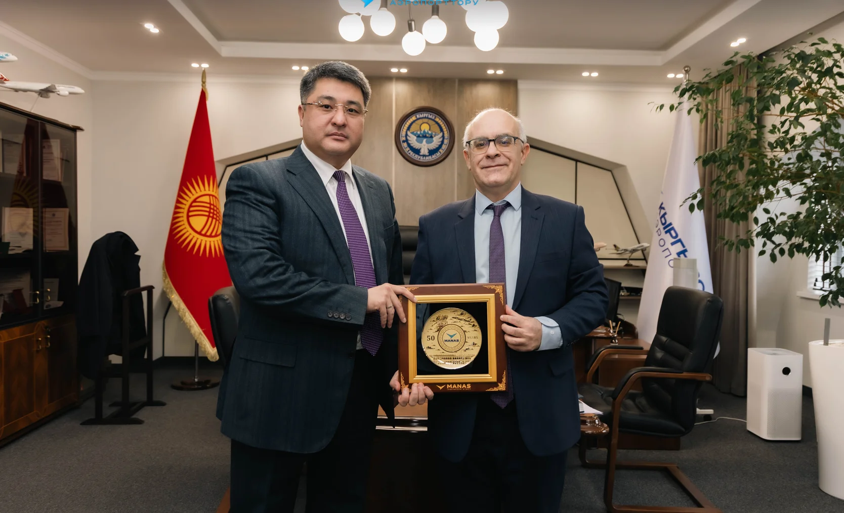 Председатель Правления ОАО «Аэропорты Кыргызстана» Манасбек Самидинов провёл рабочую встречу с послом Французской Республики в Кыргызской Республике Николя Файем.