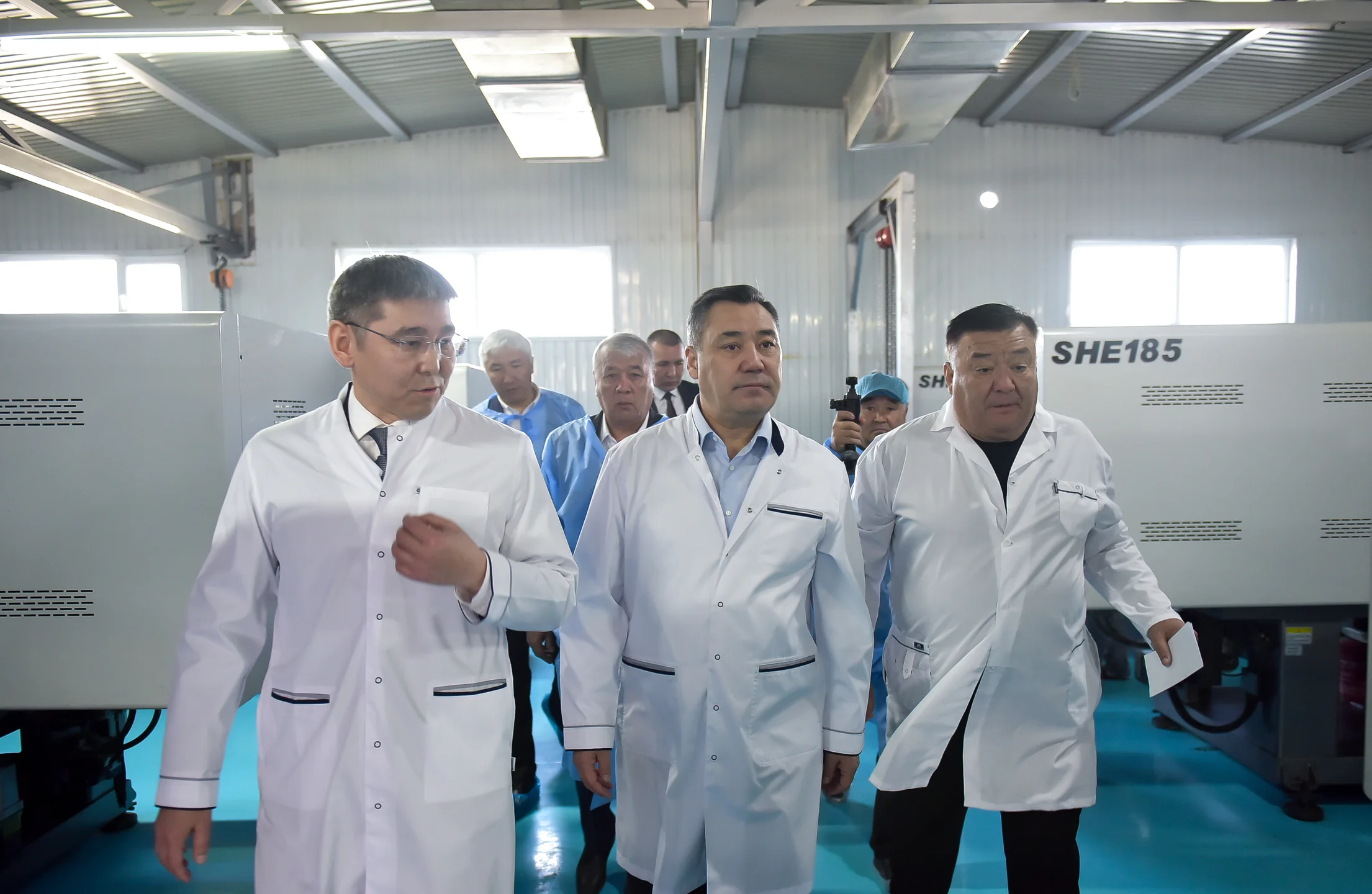 Президент Садыр Жапаров сегодня в ходе рабочей поездки в Ошскую область ознакомился с деятельностью компании по производству изделий медицинского назначения «Медимпекс».