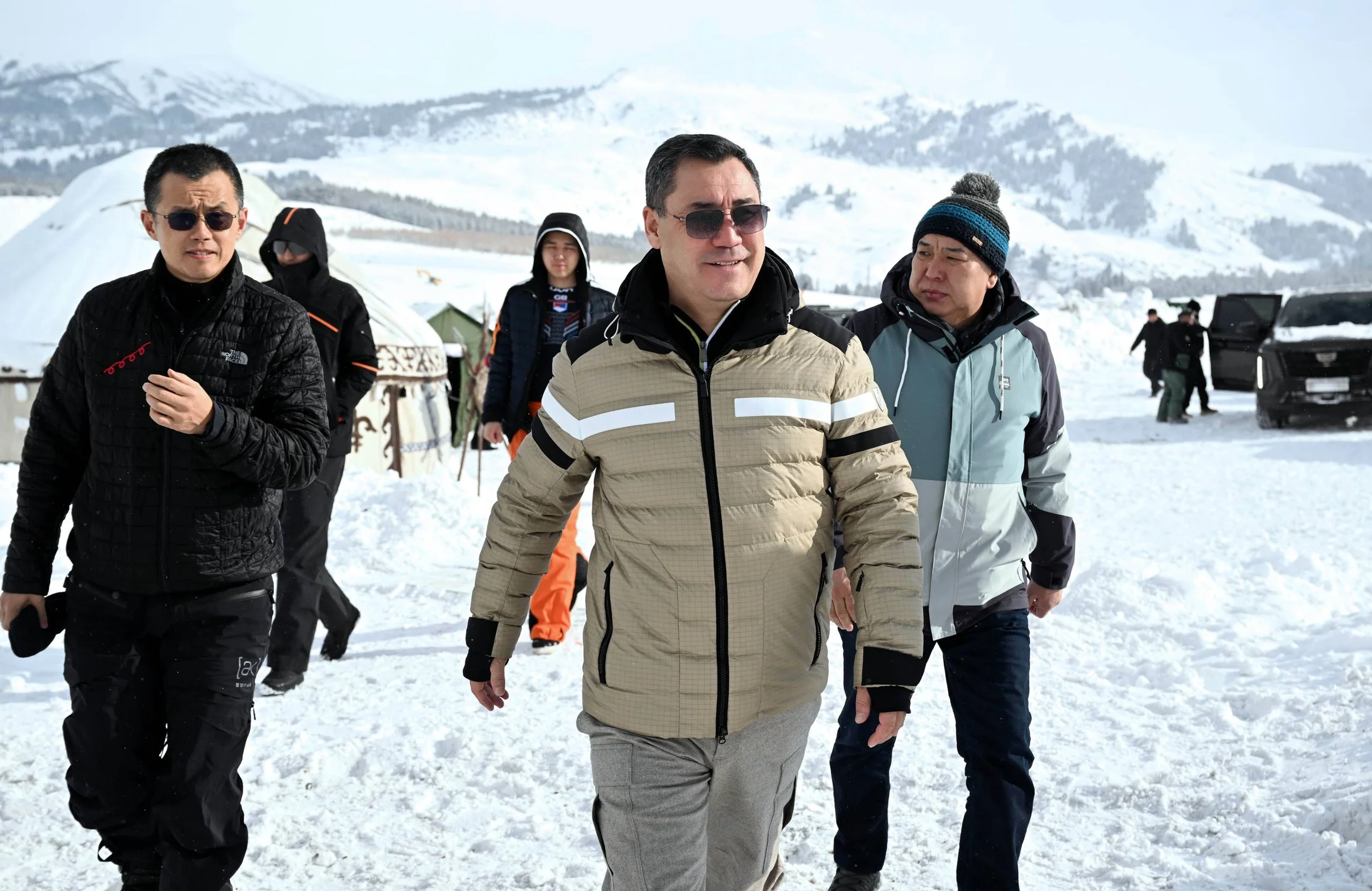 Вначале Садыр Жапаров и Чанпэн Чжао осмотрели территорию комплекса, затем ознакомились с ходом строительства всесезонного горнолыжного кластера «Ала-Тоо Резорт», который объединяет три курортных городка: Жыргалаң, Ак-Булак и Боз-Учук.