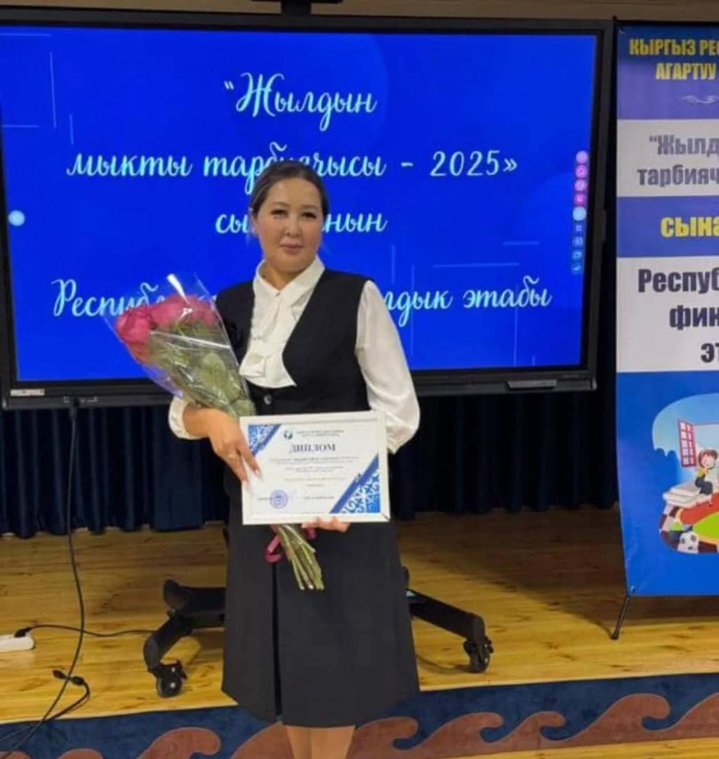 — На республиканском уровне — впервые. По предложению руководителя решила проверить свои достижения и опыт, начав с районного этапа конкурса «Лучший воспитатель года». Там заняла первое место, прошла в городской этап, где также победила. На конкурсе я проводила занятие в рамках президентского указа «Национальный дух — мировая высота» под названием «Продолжатели великого пути». Хотела донести до детей ценности кыргызского народа: рассказала, как наши мамы из овечьей шерсти делали всё — от юрты до тёплых носков, а отцы из простого дерева возводили юрту, в которой можно жить круглый год. Воспитание должно строиться на национальных традициях и ценностях.