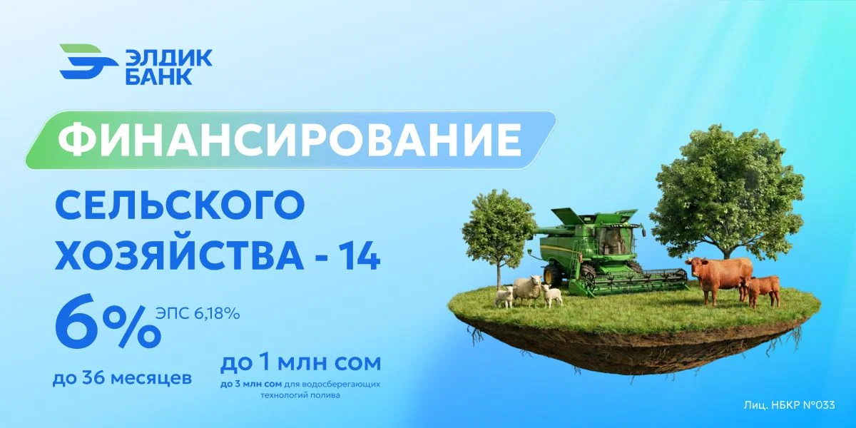 Элдик Банк объявляет о запуске программы «Финансирование сельского хозяйства – 14» (ФСХ-14), направленной на поддержку субъектов предпринимательства, осуществляющих деятельность в сфере агропромышленного комплекса.