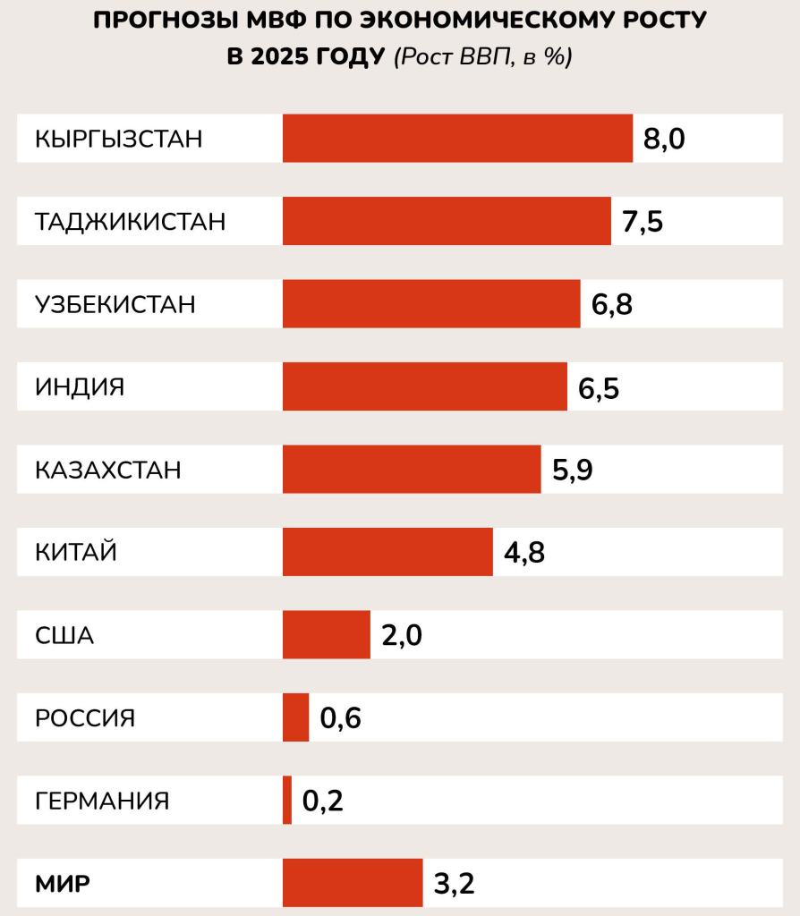 По данным МВФ, в 2025 году рост экономики Казахстана составит 5,9%, что существенно выше среднего мирового показателя. К тому же Казахстан продолжает укреплять свои позиции, опережая в этом плане всех соседей по Центральной Азии.