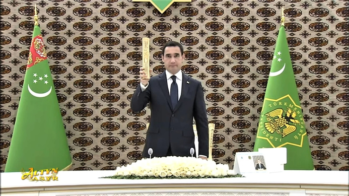 Капсула с посланием была заложена в фундамент нового комплекса. Президент Туркменистана бросил первые лопаты бетонной смеси в основание будущей новостройки.