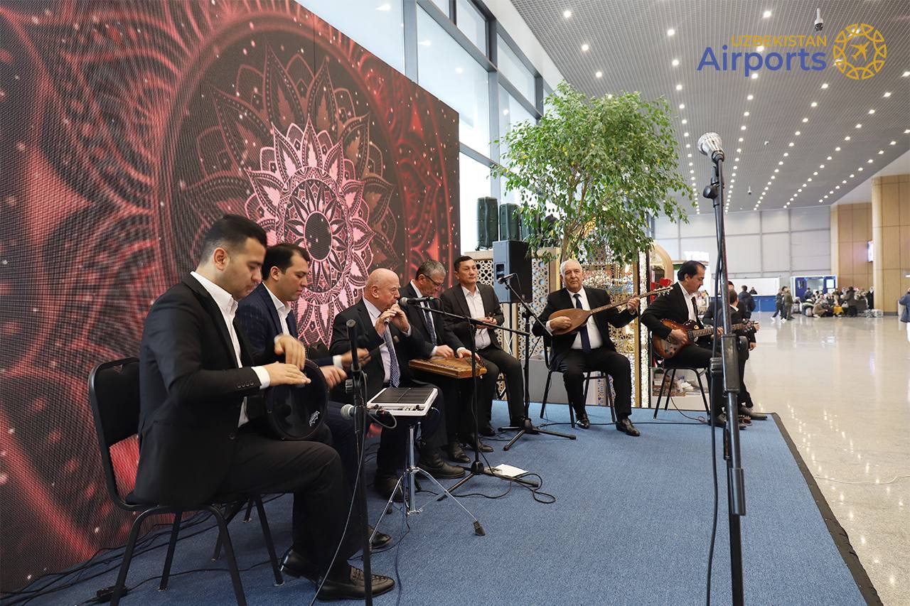 В аэропорту Ташкента впервые выступил ансамбль узбекской национальной музыки «Маком» имени Юнуса Раджаби под руководством народного артиста Абдухошима Исмаилова, передает пресс-служба Uzbekistan Airports.