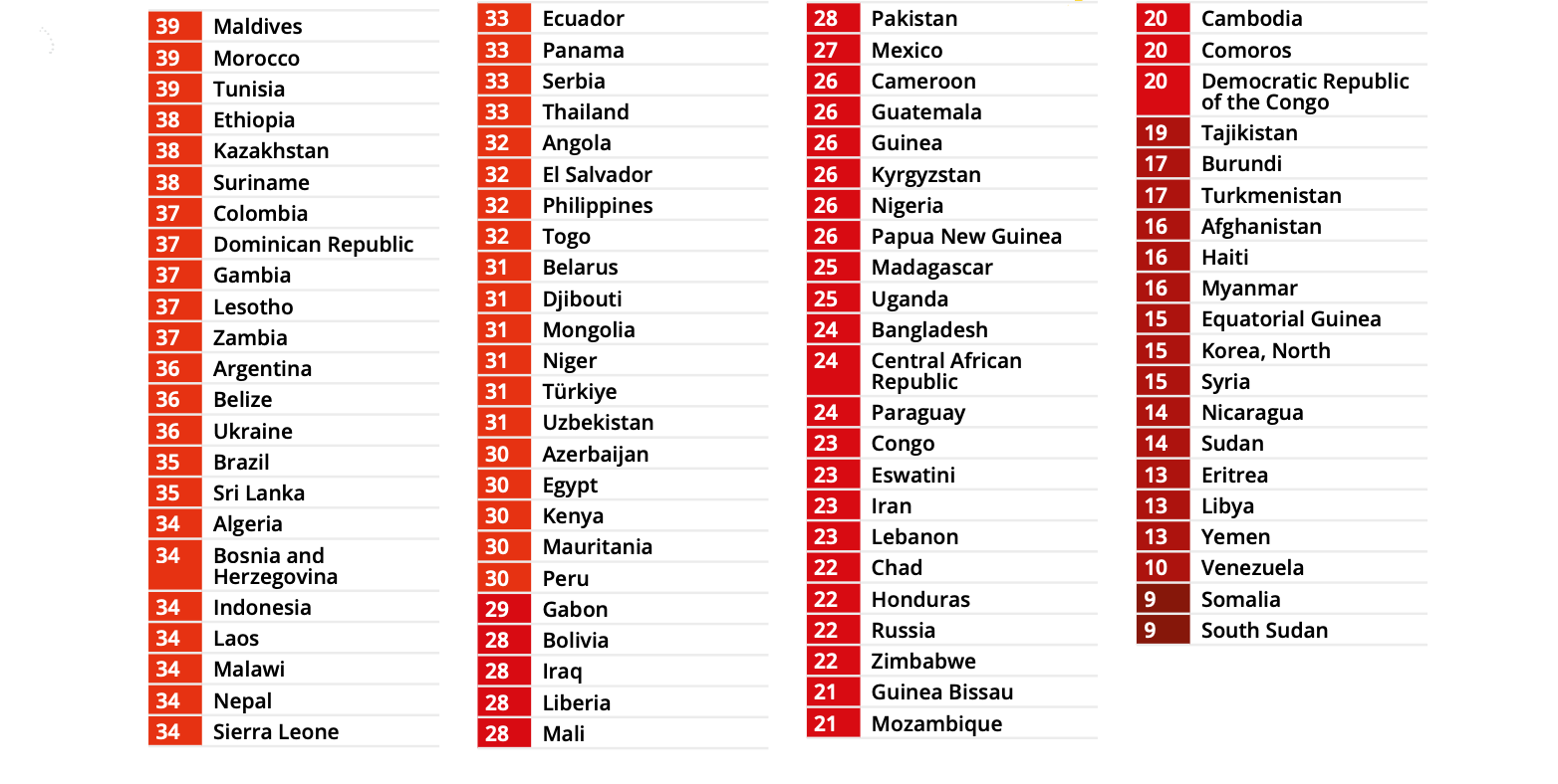 Международная неправительственная некоммерческая организация Transparency International опубликовала традиционный Индекс восприятия коррупции по итогам 2025 года. В рейтинге представлены показатели 182 стран.