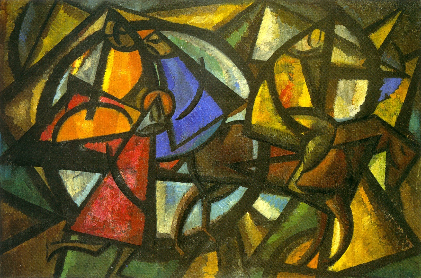 Нарисованное неповиновение также видно в сохранившейся работе Льва Гальперина « На коленях» . Уникальное слияние дадаизма и кубизма, оно представляет собой его смелый вызов советской власти. Гальперин, много путешествовавший художник из Одессы, вернулся в Советский Союз в 1921 году, но попал в ловушку. Арестованный на Рождество 1934 года за свое так называемое контрреволюционное искусство, суд отметил его как откровенного критика режима. Приговоренный к казни, его единственная работа, спасенная от забвения, говорит о его мужестве и высокой цене инакомыслия.